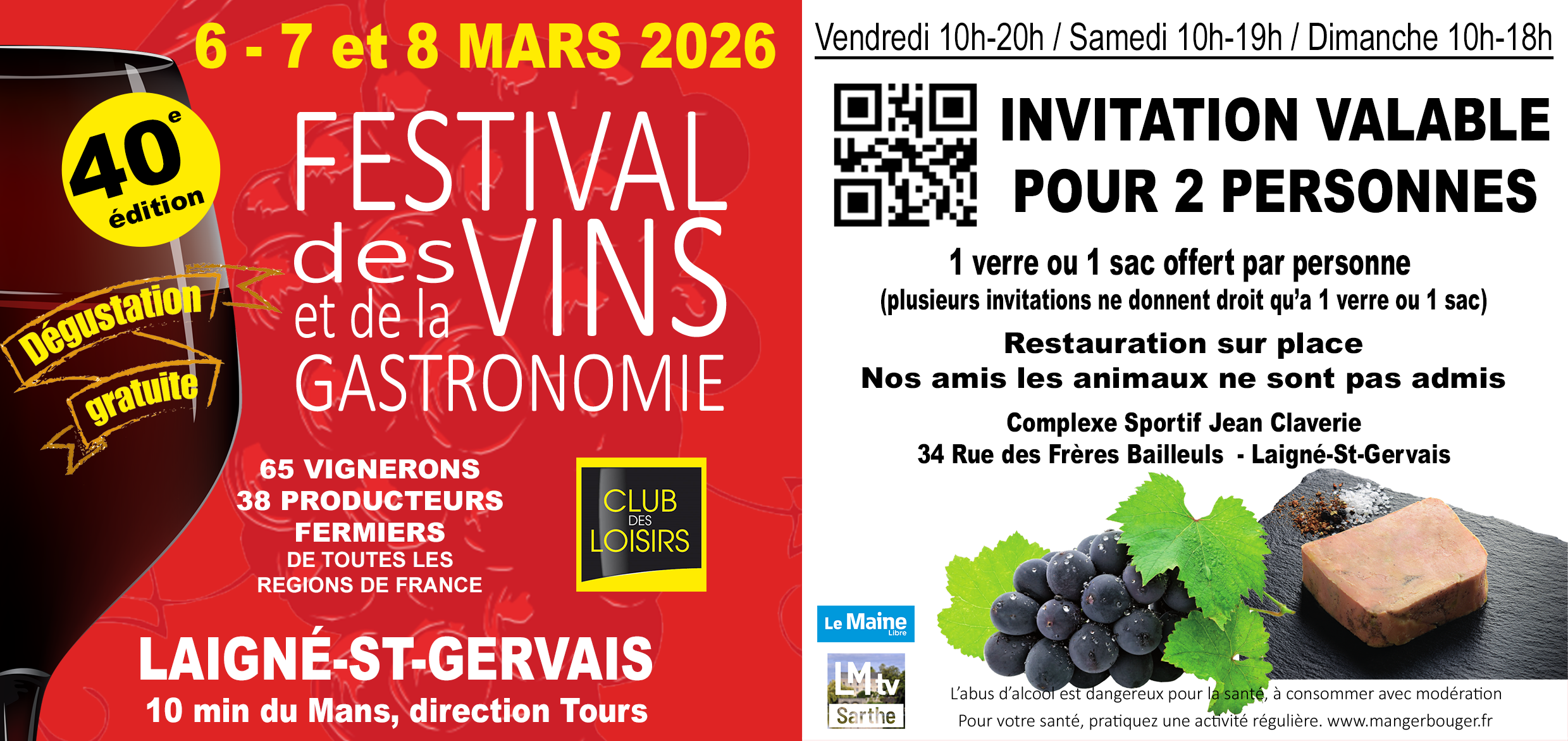 Un anniversaire exceptionnel pour ce rendez-vous incontournable des amateurs de vins et de gastronomie, qui se tiendra du vendredi 6 au dimanche 8 mars 2026, au Complexe sportif Jean Claverie à Laigné-Saint-Gervais en Belin (72).